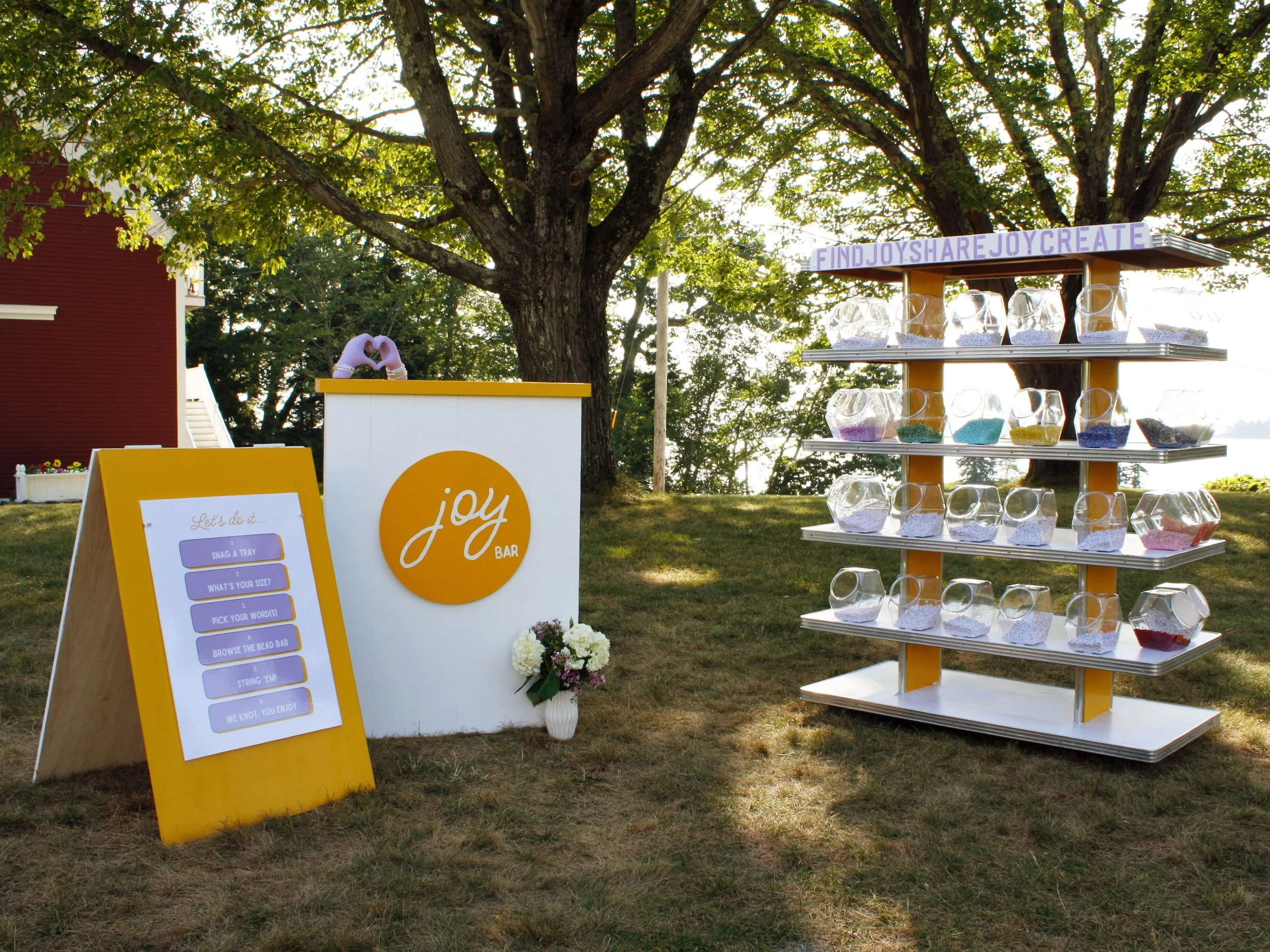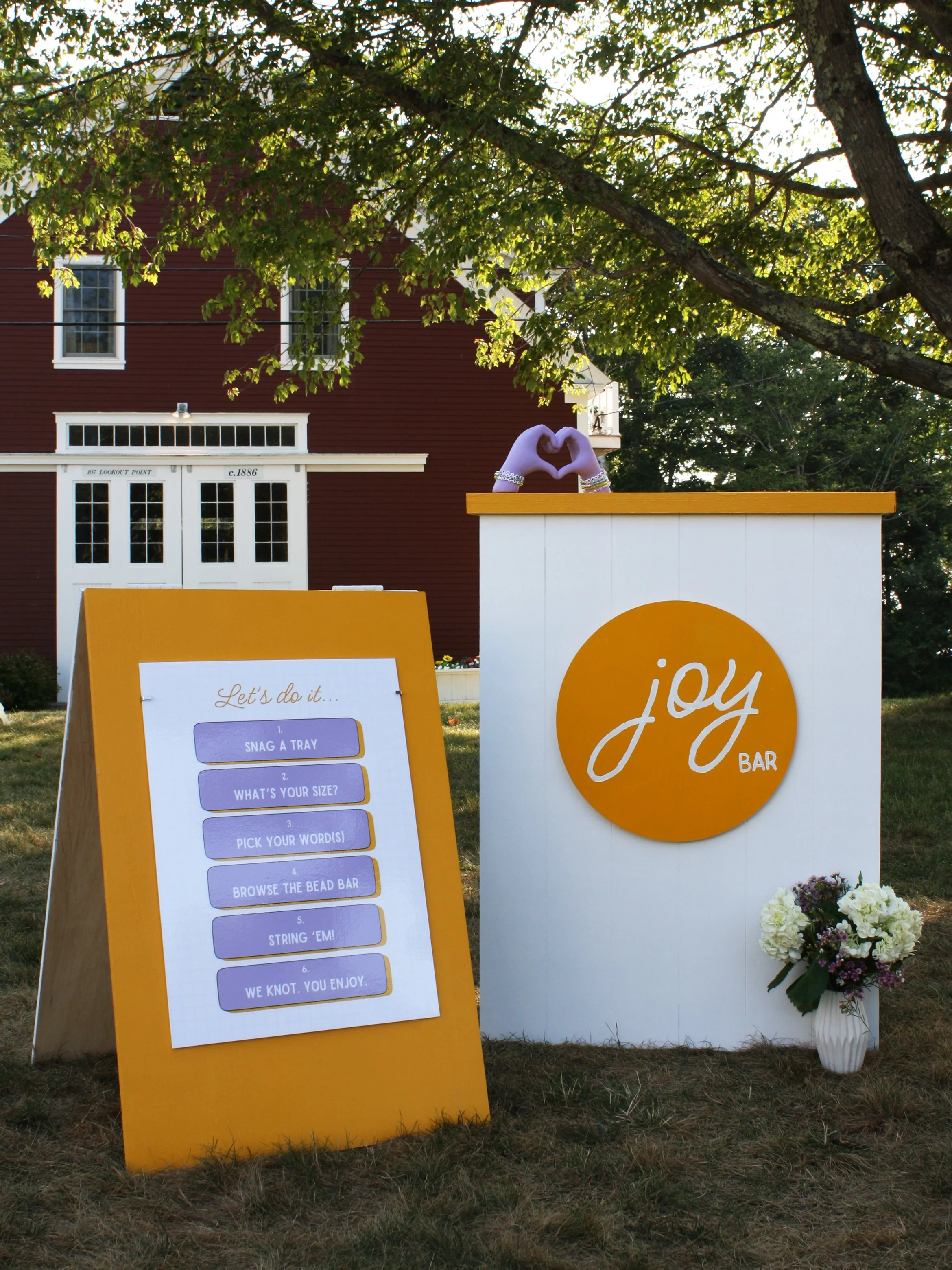 Our signature Joy Bar we bring a bespoke, joyful bead bar to your event. Guests browse the beads with a signature bead bar tray and enjoy making their unique event favor while sipping and celebrating.